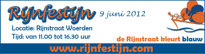 Al bijna zeven jaar maakt de Stichting Binnenstad=in=Balans (BiB) zich sterk voor het terugbrengen van water in de Rijnstraat in Woerden. Water betekent reuring en sfeer, vooral bevaarbaar water! Een recreatieve binnenstad is goed voor bewoners, bezoekers én ondernemers. In de maand juni wordt de Rijnstraat door de gemeente Woerden bij wijze van proef op de zaterdagen afgesloten voor verkeer. Tijdens drie zaterdagen in juni worden workshops en activiteiten georganiseerd voor het publiek door ondernemers en organisaties. De drie zaterdagen worden afgesloten met een debat waaraan iedereen kan deelnemen. De uitkomsten van dit Rijnfestijn moeten een bijdrage gaan leveren aan de plannen voor herinrichting van de Rijnstraat. Deze visie op de Rijnstraat is onderdeel van een totale binnenstadsvisie. Zaterdag 9 juni is de organisatie in handen van Binnenstad in Balans. Thema is ‘de Rijnstraat kleurt blauw’. Hieraan werken o.a. mee de Muziekschool, Scouting Woerden, de Stichts-Hollandse Historische Vereniging, de Kunstkring Woerden, het projectbureau Oude Hollandse Waterlinie en het Straattheaterfestival. Er zijn voorts diverse kinderattracties: tekenen, een ballonnenwedstrijd en een Aqua-Bubble-bad. Kortom: het wordt een leuke en hopelijk zonnige dag!