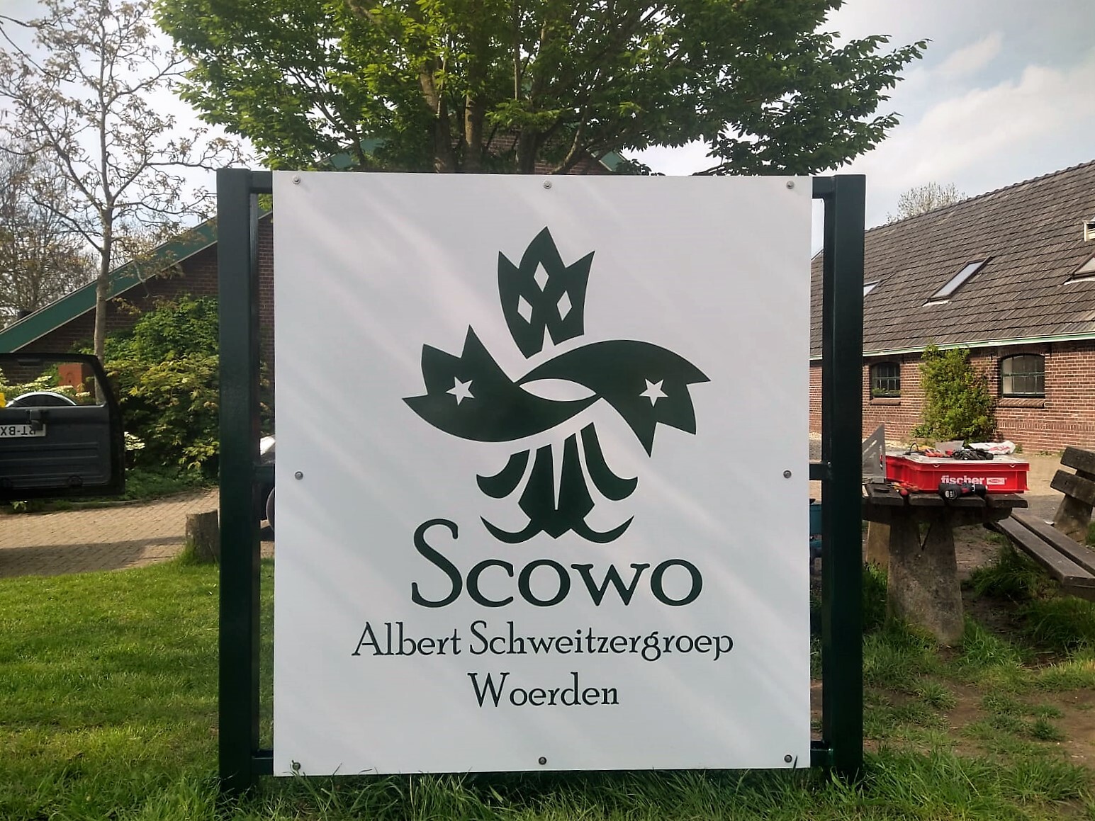 Sinds vandaag staat er een mooi nieuw bord naast de picknickbank op het scoutingterrein aan de Kromwijkerdijk. Op dit bord heeft het Scouting Nederland logo plaatsgemaakt voor ons eigen ScoWo-logo. Wist je trouwens, dat ScoWo eigenlijk een afkorting is van Scouting Albert Schweitzergroep Woerden?!