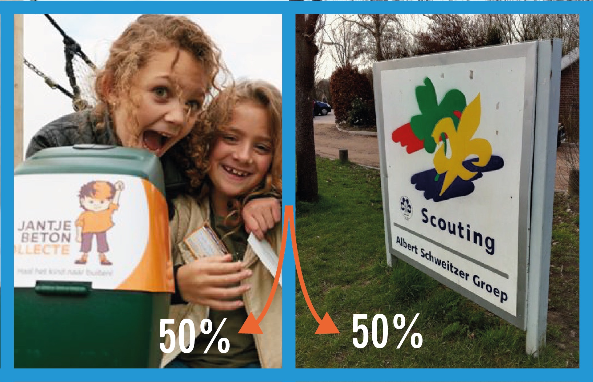 Dit jaar kunnen wij niet langs de deuren, daarom collecteren we digitaal! De helft van wat wij ophalen is voor ons eigen ScoWo, de andere helft gaat naar landelijke projecten van Jantje Beton. Wij sparen voor een overkapping boven ons speelpleintje, wil je ons helpen om dit doel te bereiken?